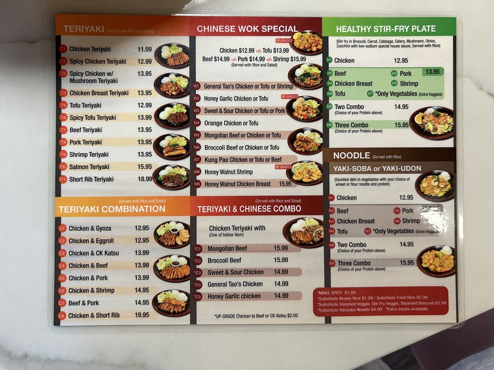 “ As soon as I walked in I felt comfortable, due to the cozy decor and welcoming staff. They had a large selection in their menu, which made my job of deciding more difficult. My order was taken quickly and I was on my way within about 10 minutes. I got one of the teriyaki combos and with Katsu. The Teriyaki was moist and tender, yet had a slightly charred texture outside. The katsu was crisp and tender inside. Overall a delicious experience. It's definitely someplace I wouldn't hesitate visiting again. ”
